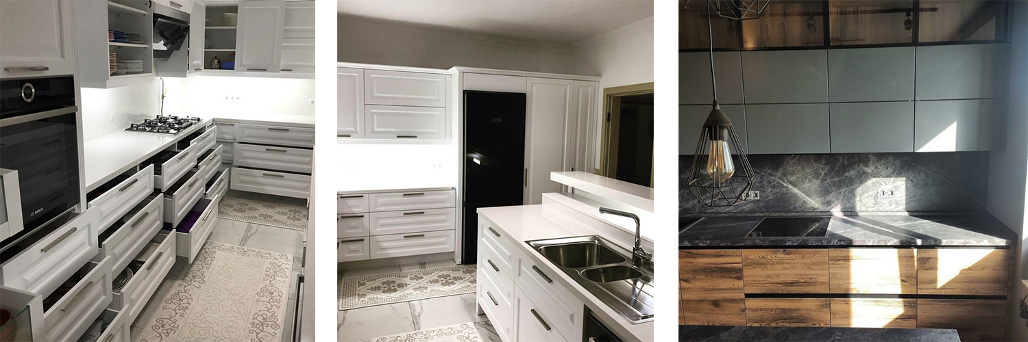 Mutfak dolapları bir mutfağın olmazsa olmazı olan en önemli dekorasyon ve depolama alanıdır. Firmamızdaki uzmanlarımız tarafından mutfağınıza gelerek özel olarak çizilen mutfak dolabı tasarımlarında mutfaklarınızın ölü noktaları değerlendirilerek mutfaklarınızda maksimum genişlik sağlanır. Bunun yanında mutfak dolaplarında kullanılan mobilyalar modern ve şık malzemeler olup, akrilik, lake , mdflam gibi sağlam ve kaliteli ahşaplardan tercih edilir.